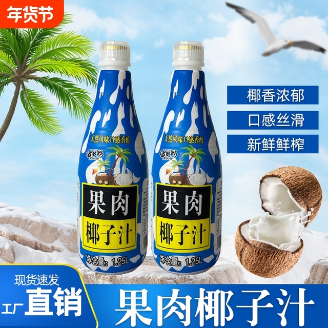 百多利海南椰子汁1.25L*2大瓶下拉金币到手8.2元包邮