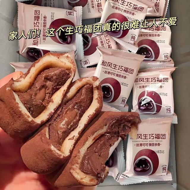 和风生巧大福,四大原材,精心挑排选,鲜奶油与巧克力,细腻微苦丝滑,Q弹软糯,雪媚娘外衣,